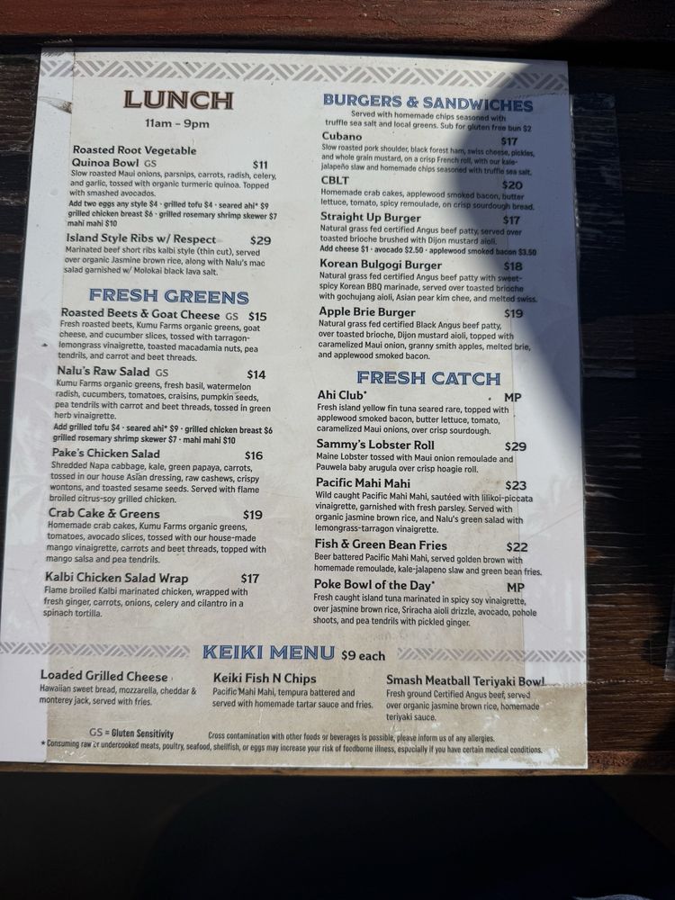 Located in Kihei, Hawaii, Nalu's South Shore Grill is a must-visit Hawaiian restaurant that offers a diverse menu and a range of amenities. With options for takeout, delivery, and vegan and vegetarian choices, Nalu's caters to a variety of dietary preferences. The restaurant is wheelchair accessible, with no steps or stairs, an ADA-compliant restroom, and accessible parking. Offering QR code menus, accepting credit cards and mobile payments, Nalu's ensures a convenient dining experience. The outdoor seating, full bar, happy hour specials, and dog-friendly policy create a laid-back atmosphere suitable for all occasions. Whether you're looking for a casual meal or a special event, Nalu's South Shore Grill does not disappoint with its delicious Hawaiian-inspired dishes and excellent service.